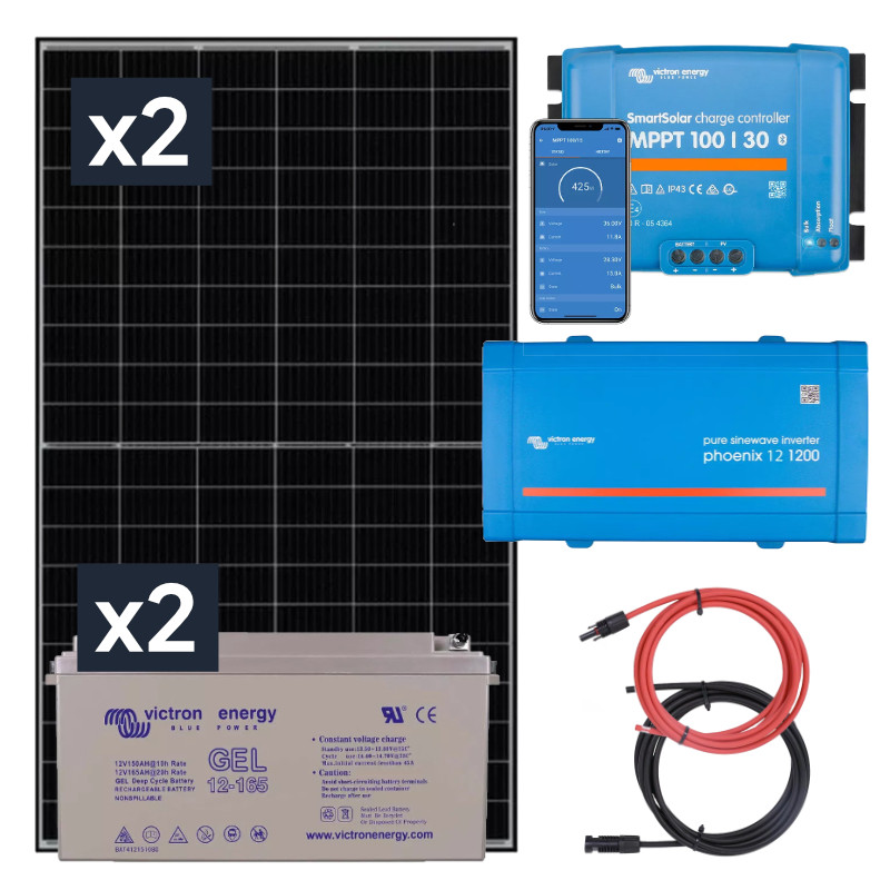 Zestaw zawiera dwa akumulatory żelowe o pojemności 150Ah, które zapewniają stabilność i niezawodność zasilania w każdych warunkach. Są one doskonałym wyborem nie tylko do użytku domowego, ale także w pojazdach rekreacyjnych i łodziach. Zgromadzona energia może być efektywnie wykorzystywana dzięki przetwornicy napięcia Victron Energy, która generuje prąd o napięciu 230V.