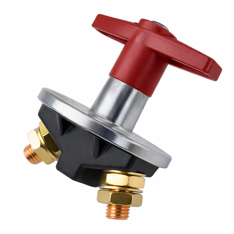 Solidny rozłącznik główny do instalacji 12/24 V DC, przystosowany do pracy ciągłej z prądem do 250 A. Zapewnia szybkie i bezpieczne odcięcie zasilania w pojazdach, łodziach, kamperach oraz systemach off-grid.