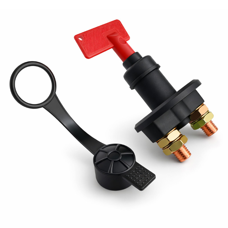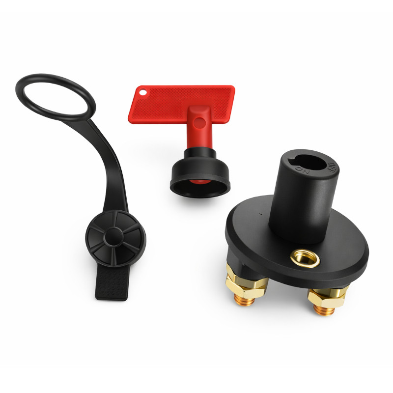 Wytrzymały rozłącznik główny do instalacji 12/24 V DC, przystosowany do pracy ciągłej z prądem do 100 A. Zapewnia szybkie i bezpieczne odcięcie zasilania w pojazdach, łodziach, kamperach oraz systemach off-grid, zwiększając bezpieczeństwo całej instalacji. Zaprojektowany do niskonapięciowych systemów zasilania w motoryzacji, zastosowaniach morskich oraz autonomicznych układach fotowoltaicznych, gdzie wymagana jest niezawodna separacja akumulatora. Niewielkie wymiary ułatwiają montaż w szafach zasilających, np. typu Szafa FF01-6615-12BL V2 z termostatem, a solidne wykonanie zapewnia trwałość oraz odporność na warunki zewnętrzne. Może pełnić rolę głównego wyłącznika serwisowego lub elementu bezpieczeństwa w skrzynkach i szafach zasilających (np. Szafa FF01-6615-12BL V2 z termostatem), instalacjach PV off-grid, kamperach, łodziach oraz innych systemach, w których wymagane jest szybkie i pewne odłączenie akumulatora.