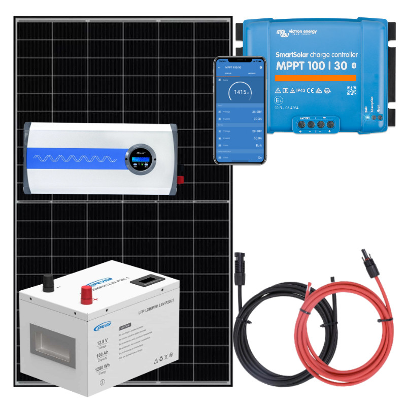 Zestaw fotowoltaiczny z panelem 435W, regulatorem ładowania 30A, akumulatorem 100Ah LiFePO4 oraz przetwornicą IPT1000-12-PLUS-T 1000W firmy Epever. Zapewnia rewelacyjną dynamikę pracy oraz bardzo długa trwałość akumulatora.
